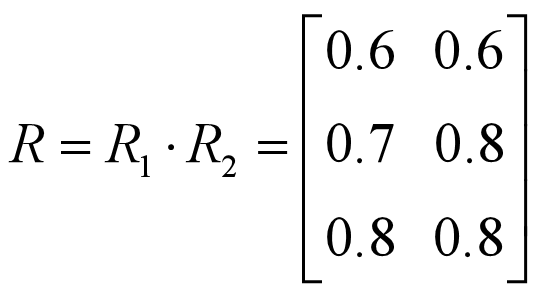 (R1第i行和R2第j列对应元素取最小,再对k个结果取最大, 所得结果就是R中第i行第j列处的元素。)