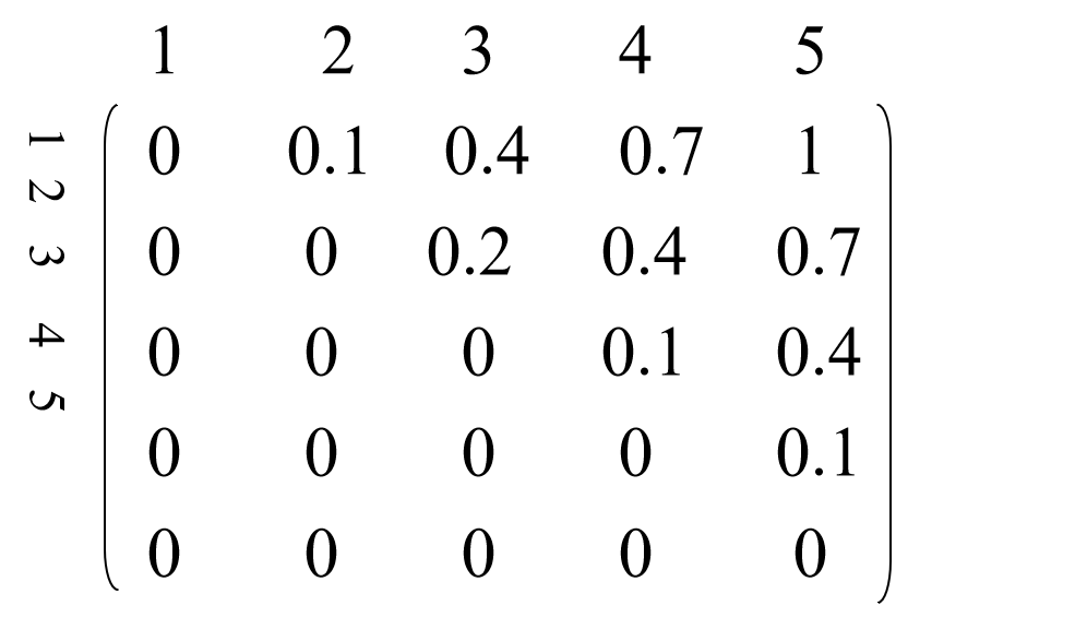 R远大于=0.1/(1,2)+0.4/(1,3)+0.7/(1,4)+1/(1,5)+0.2/(2,3)+0.4/(2,4)+0.7/(2,5)+0.1/(3,4)+0.4/(3,5)+0.1/(4,5)