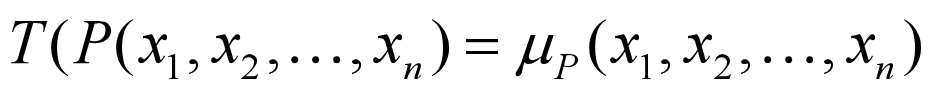 表示一个模糊命题。定义这个模糊命题的真值为其中对象x1, x2, …, xn对模糊集合P的隶属度, 即