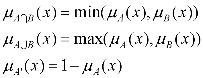 定义3 设A、B是X的模糊子集, A、B的交集A∩B、并集A∪B和补集A′, 分别由下面的隶属函数确定: