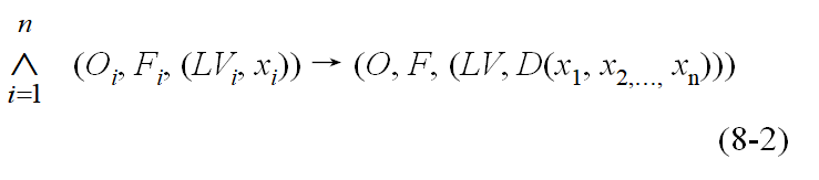 其中,Oi, O表示对象,Fi, F表示特征,LVi, LV表示语言特征值,x, D(x1, x2,…, xn )表示程度,D(x1, x2,…, xn )为x1, x2,…, xn 的函数。我们称其为规则的程度函数。