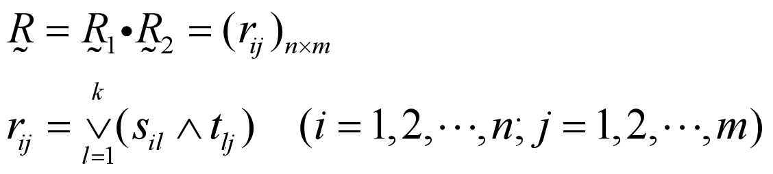 什么是模糊关系合成呢? 模糊关系合成也就是两个模糊关系复合为一个模糊关系。用集合的话来讲, 就是两个集合合成为一个集合。 如果是两个有限模糊集, 则其合成可以用矩阵运算来表示。下面就以有限模糊集为例,给出Zadeh的模糊关系合成法则。