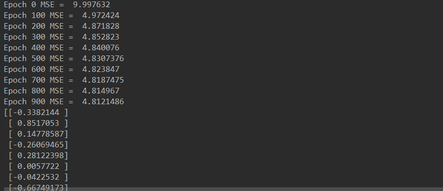 前面的代码执行的不错,但是它需要数学上通过损失函数MSE来求导梯度,我们得先把它推出来。