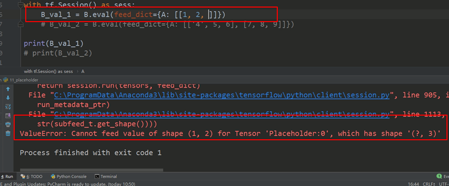第一次A传一个特殊的超参数 feed_dict ,传一个1行3列的数据。第二次A传一个2行3列的数据。