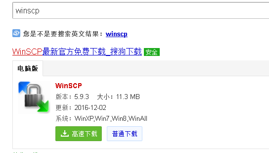 这里假设我们已经拥有了WinSCP软件运行的环境(一台Windows操作系统和一台Linux服务器)。WinSCP软件安装包已经下载好,如果不会下载,在百度搜索中输入WinSCP,出来的第一个就是百度软件中心提供的下载链接,下载这个即可。