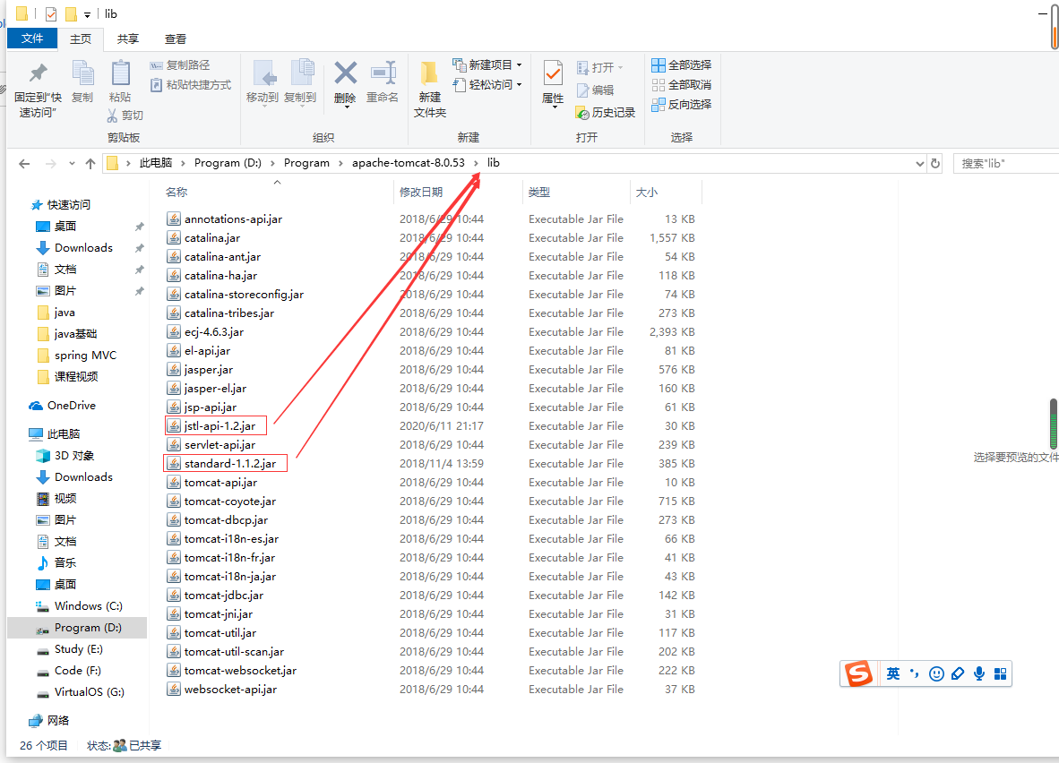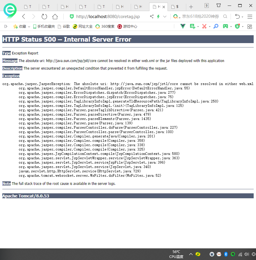 目录 问题现象 原因分析 解决方案 问题现象 原因分析 Tomcat缺少jstl-api-1.2.jar和standard-1.1.2.jar和这两个jar包。 解决方案 将jstl-api-1.2.jar和standard-1.1.2.jar这两个包放入到D:\Program\apache-tomcat-8.0.53\lib目录下 来源:oschina链接:https://my.oschina.net/u/4276629/blog/4309547 标签 jstl Tomcat apache