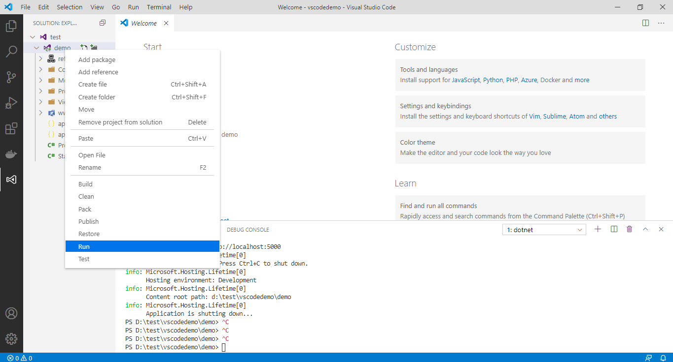 在Visual Studio Code上的开发插件:vscode-solution-explorer、c#、vscode-icon、NuGet Package Manager、C# XML Documentation Comments,