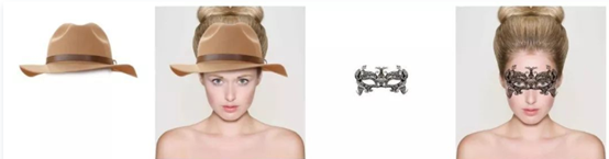 最后,根据H遍历用户照片,将用户照片像素映射到贴纸模板mask_a或者mask_b中,根据贴纸模板像素的透明度进行alpha混合,即可得到最终效果.