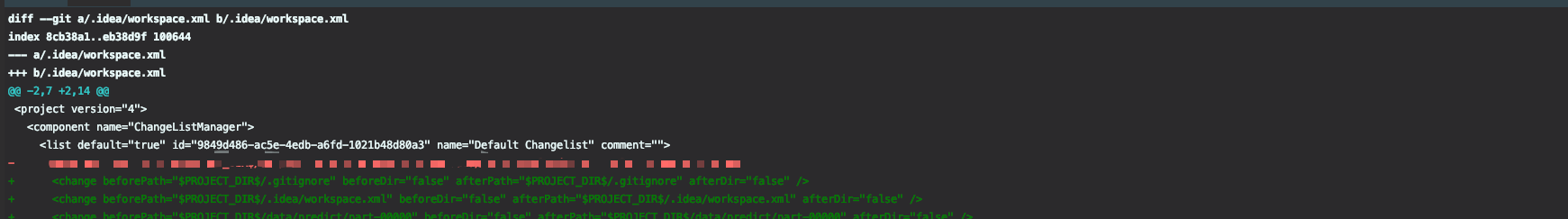 修改xx文件后,git diff发现workspace.xml也发生修改