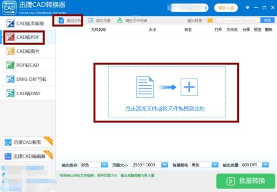 第一步:在浏览器中搜索【迅捷CAD转换器】,在搜索的结果中点击进入迅捷CAD的官网,下载并安装软件。打开软件后,点击选择“CAD版本转换”;点击界面中间的“添加文件”按钮,把需要转换的CAD文件添加进来。