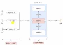 - 智能合约:如果接收方的账户存在相关代码(智能合约),则代码会自动运行,并且他的内部存储也可能被改变,比如代码还可能设定向其他账户发起新的交易信息,这就会造成进一步的借贷资金关系。