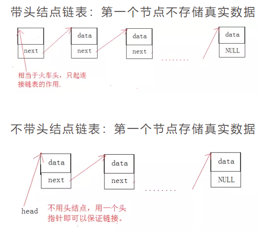 单链表分为 2 种情况:带头结点链表 + 不带头结点链表。