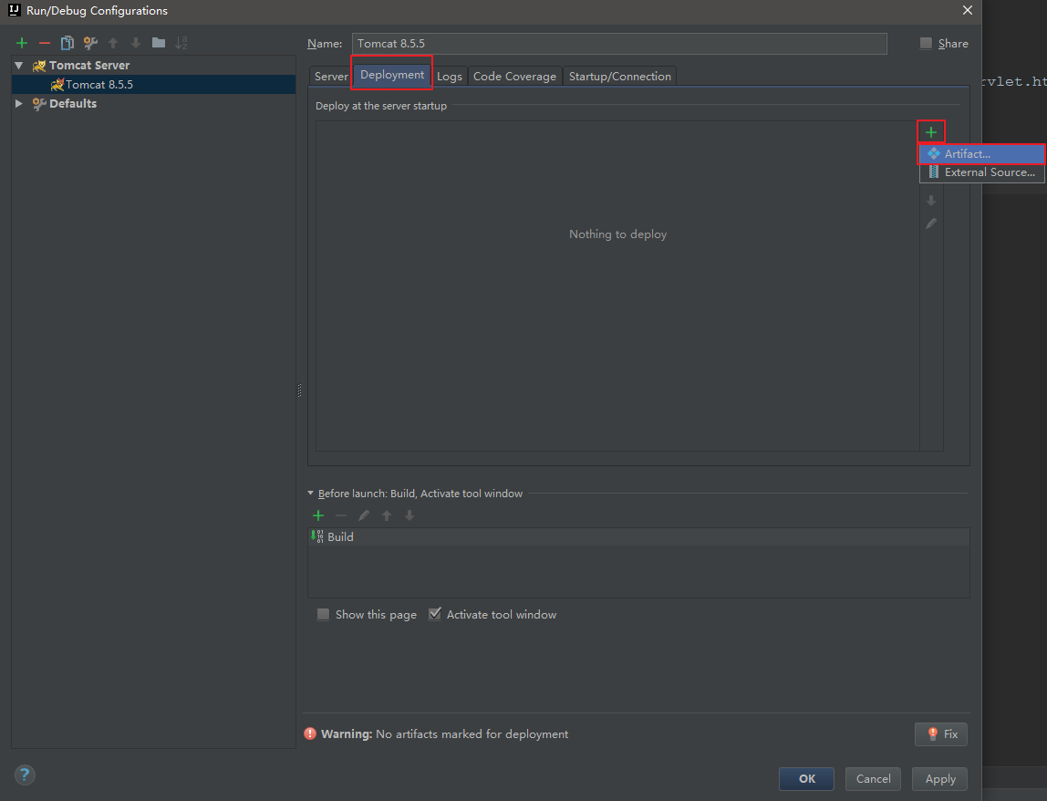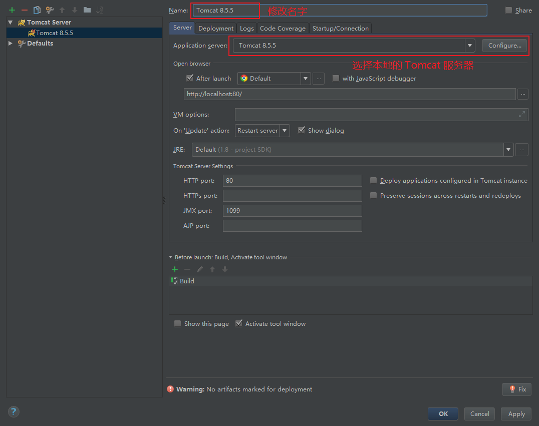 点击 OK 就好了,我们点击右上角的三角形将 Tomcat 服务器运行起来。