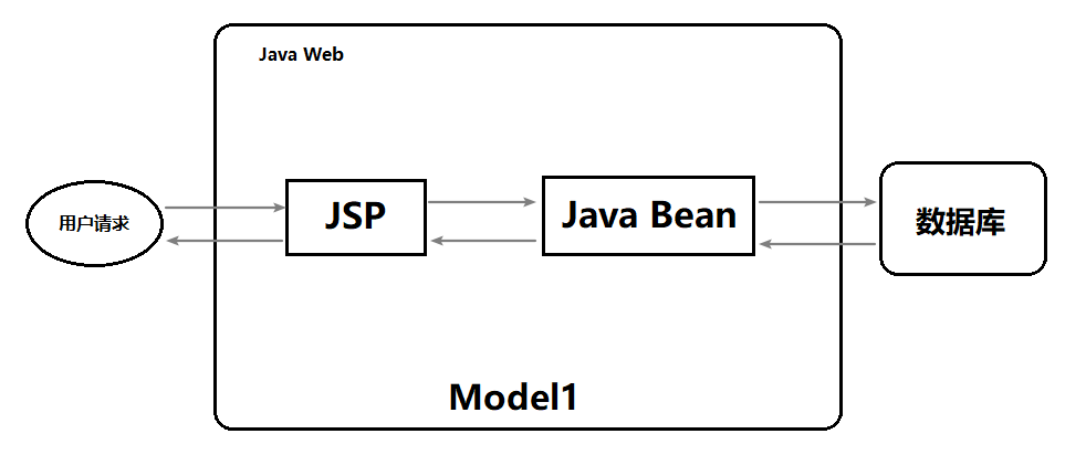 在早期 Java Web 的开发中,统一把显示层、控制层、数据层的操作全部交给 JSP 或者 JavaBean 来进行处理,我们称之为 Model1: