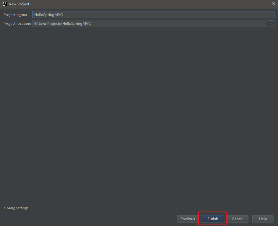 并且取名为 【HelloSpringMVC】,点击【Finish】: