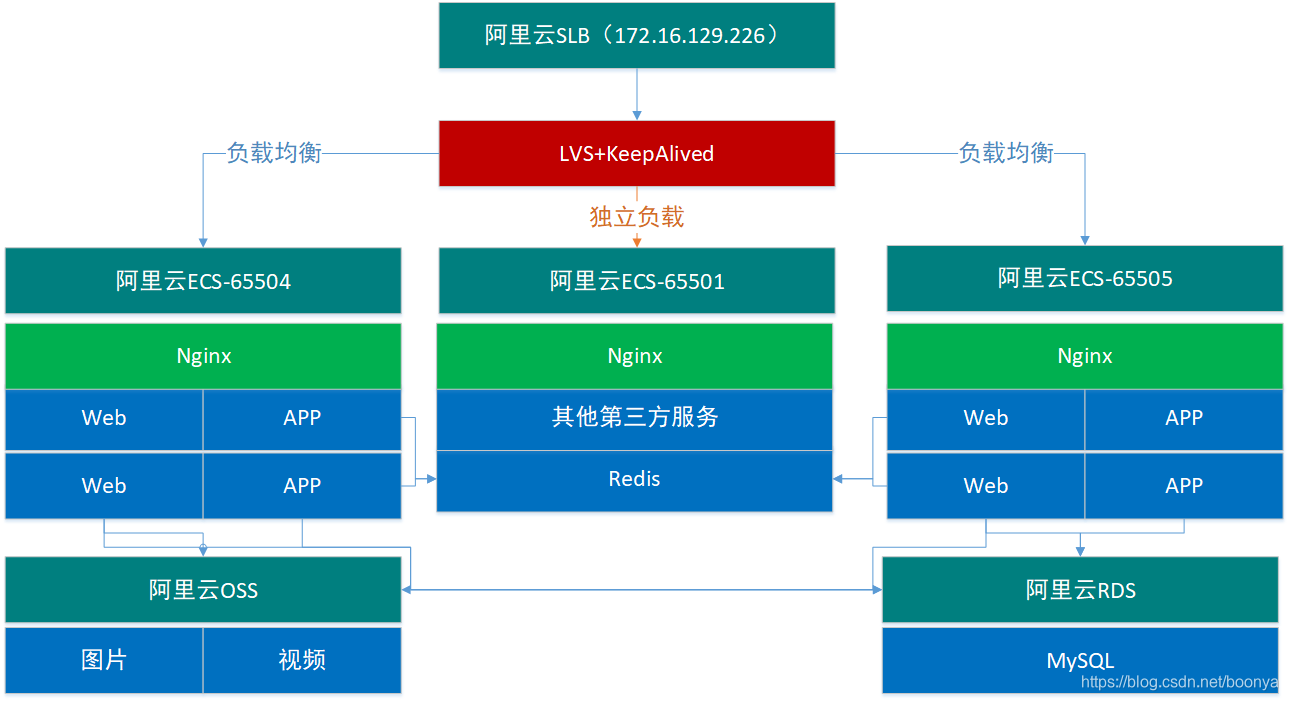 注意:SLB已经包括了流量分发服务,即LVS+keepAlived。所以,可以近似看为如下图所示: