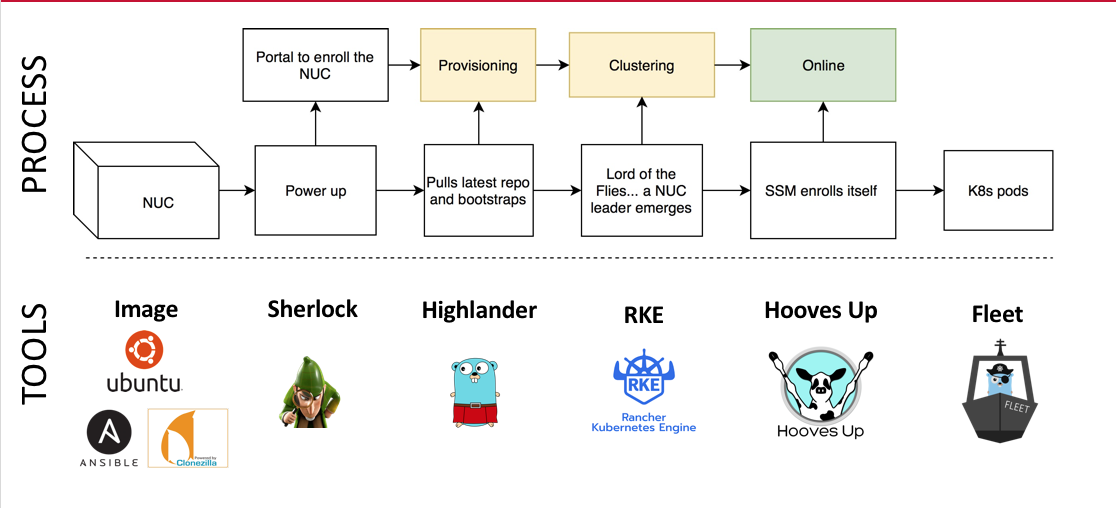Chick-Fill-A是美国一家非常知名的餐饮连锁商。在2018年将2000间门店从Docker迁移到Kubernetes平台上。每个门店以一组Intel NUC设备组成三节点集群,利用Kubernetes和大量开源软件集成进行舰队管理(Fleet Management)。
