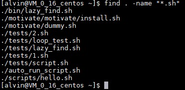 所以,这里就偷个懒,介绍最基本的,根据文件名查找文件的方法。假如我们想搜索当前目录(及其子目录)下所有 .sh 文件,可以这样搜索: