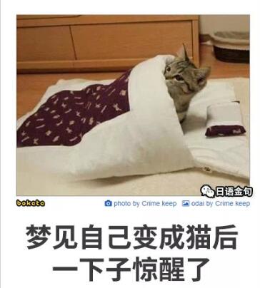 “梦见自己变成猫后,一下子惊醒了,不对是笑醒了。”