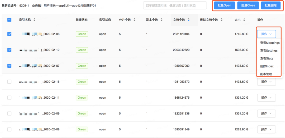 集群管控收敛账号权限,限制每个账号操作索引的范围。避免各个部门或业务随意复用集群,比如不通过系统申请直接将其它各种日志或业务数据直接Load进Elasticsearch,造成索引泛滥无法治理。