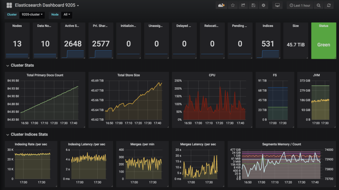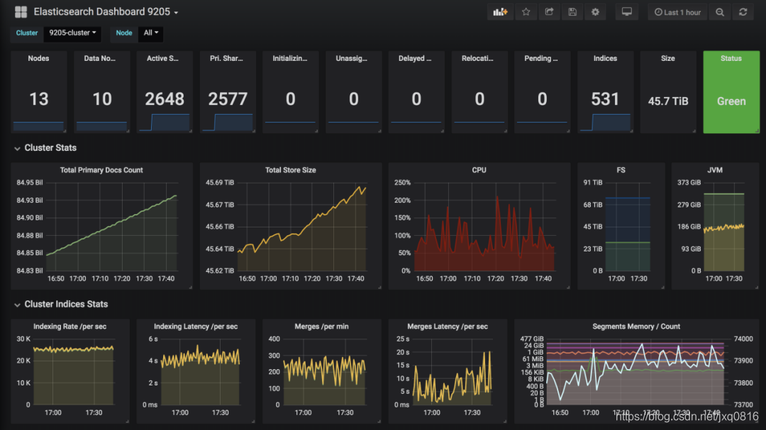 用户端,可以通过Kibana可以看到索引index的速度、延迟等信息。