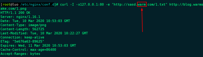 测试防盗链: curl -I -x127.0.0.1:80 -e “http://sasd.warm1.com/1.txt” http://blog.warmsake.com/1.png