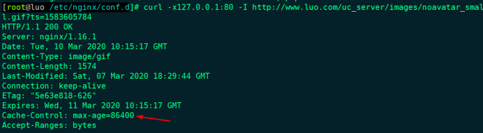 [root@luo ~]# curl -x127.0.0.1:80 -I http://www.luo.com/uc_server/images/noavatar_small.gif?ts=1583605784