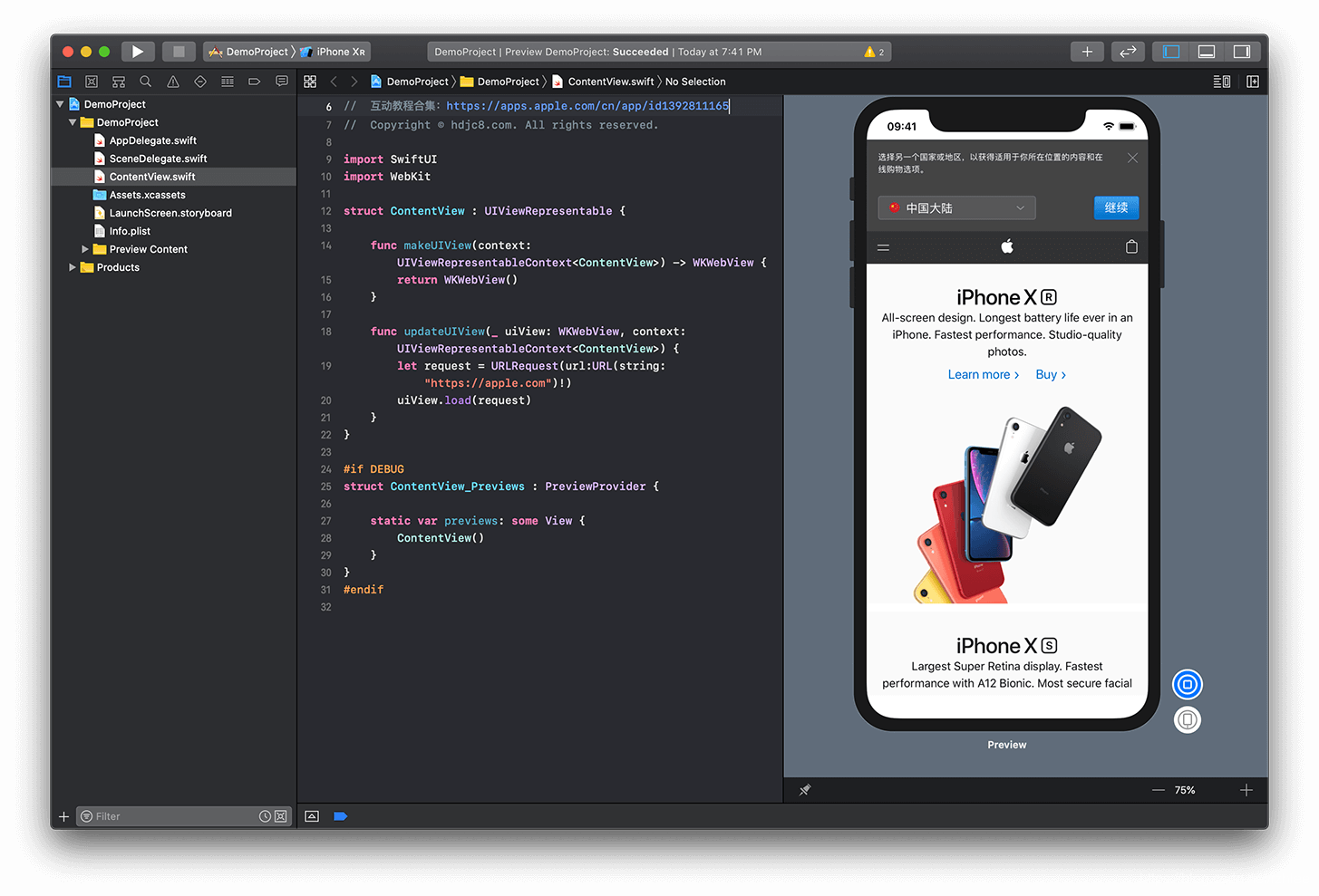 SwiftUI并没有包含WebView,这里通过遵循UIViewRepresentable协议,在SwiftUI中集成UIKit中的WKWebView。