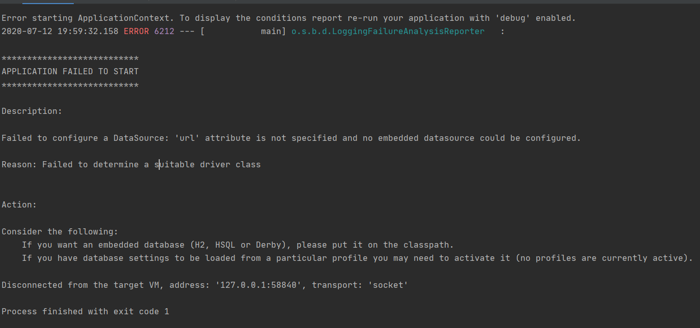 今天遇到一个问题,新建了一个Springboot项目启动报错If you want an embedded database (H2, HSQL or Derby), please put it on the classpath。4