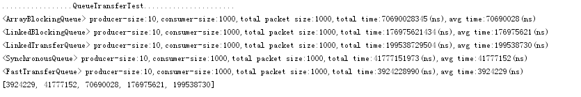3:创建10个生产者线程,不停往队列中写数据(数据包传递时开始计时,单位:纳秒)