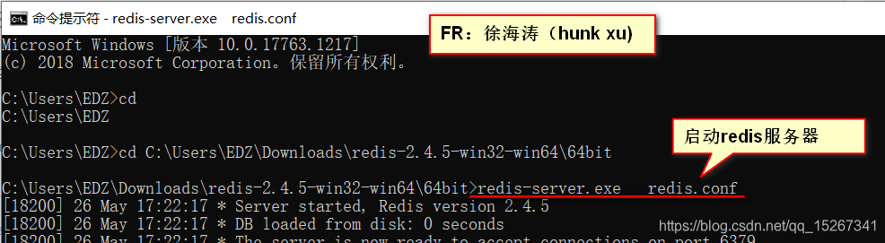 左面左下角,输入cmd,调出命令提示行,然后cd到 redis安装目录,然后如下图启动服务器