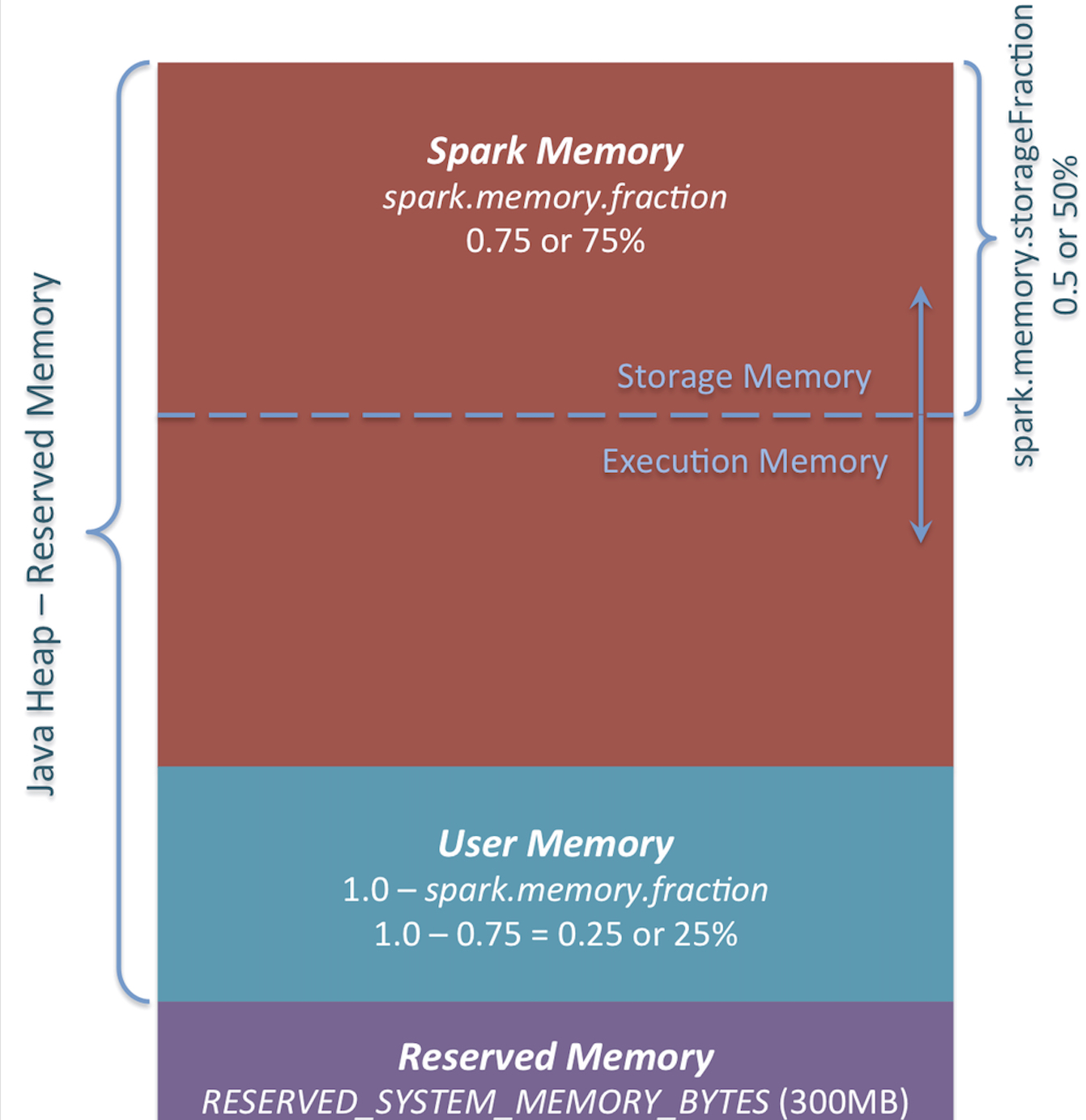 注:2.0+和2.0以前的版本默认值不同(spark.memory.fraction Spark2.0+默认值0.6 Spark1.6默认值0.75)