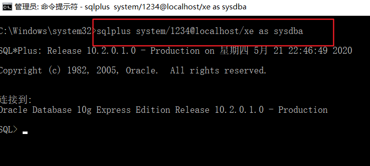 sqlplus system/1234@localhost/xe as sysdba