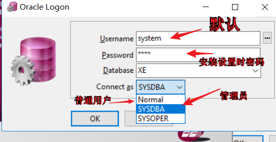 步骤三: 以dba身份登录XE,执行下列语句