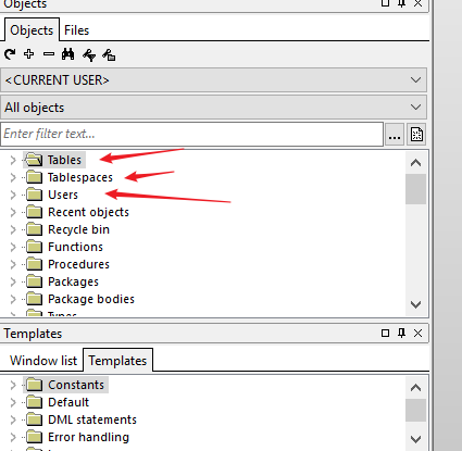 我们后面开发经常用到 Tables , Tablespaces , Users这三个最基本的操作,可按自己喜好,放置位置即可