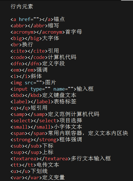 HTML常用标签或属性全称