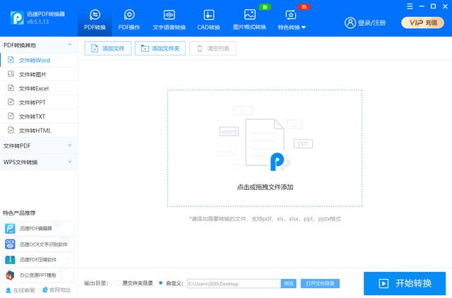 双击打开迅捷PDF转换器,你会看到如下的这个界面。