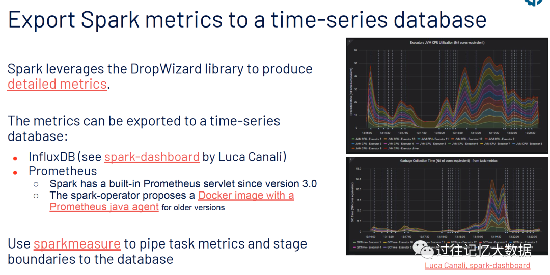 Spark 利用 DropWizard 类库来产生详细的 metrics。我们可以将这些 metrics 存储到时序数据库中: