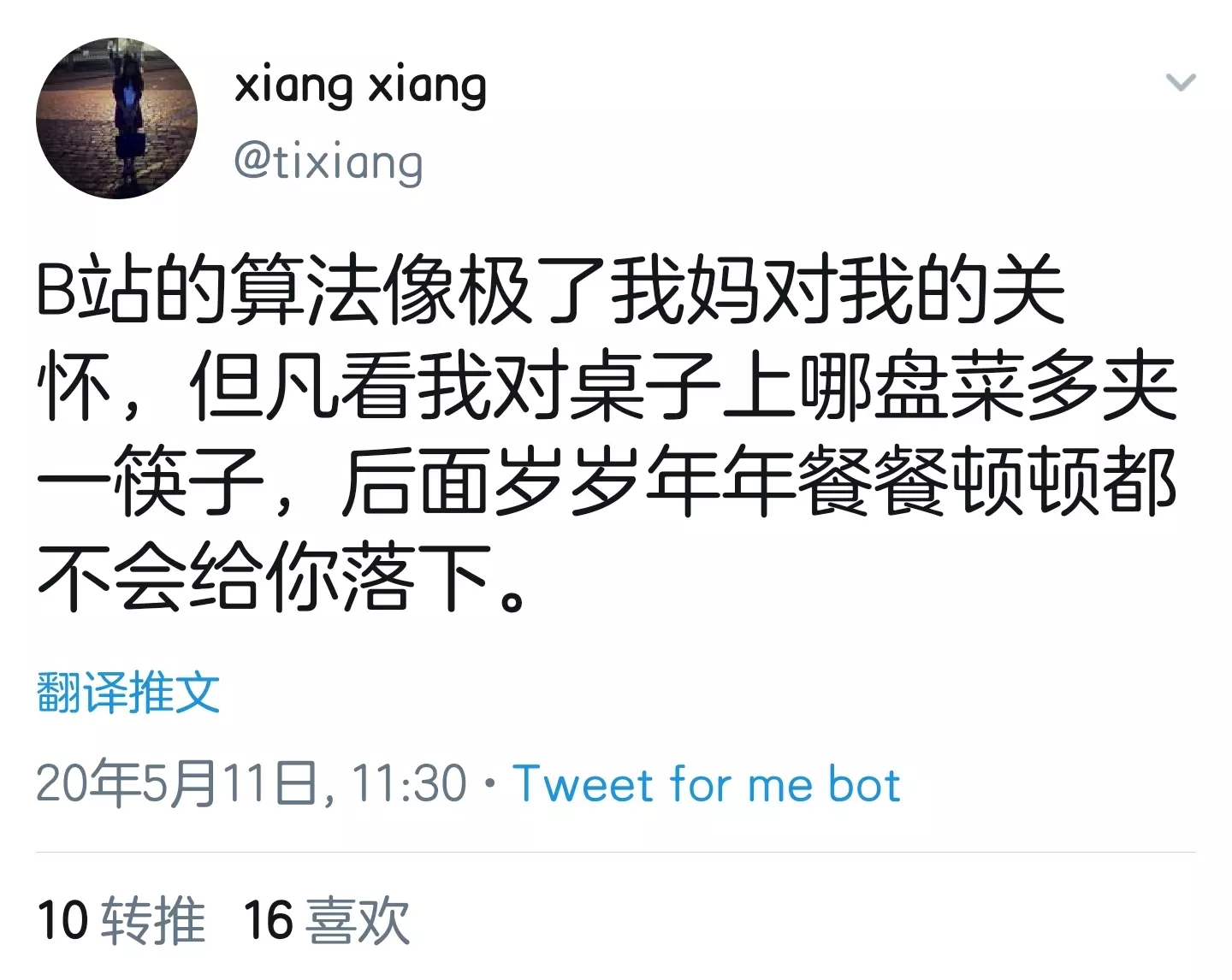 @Tumblr :B站的算法像极了我妈对我的关怀,但凡看我对桌子上哪盘菜多夹一筷子,后面岁岁年年餐餐顿顿都不会给你落下。