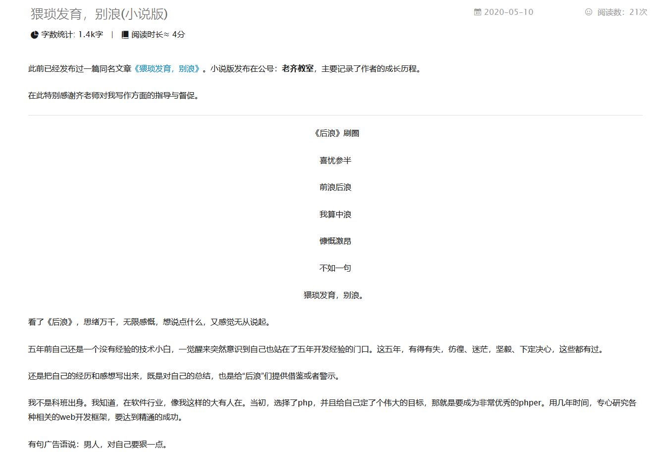@tsingliu :分享一下自己的成长经历《猥琐发育,别浪(小说版)》
