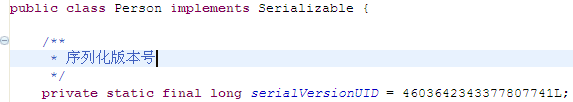 这种方式生成的serialVersionUID是根据类名,接口名,方法和属性等来生成的,例如: