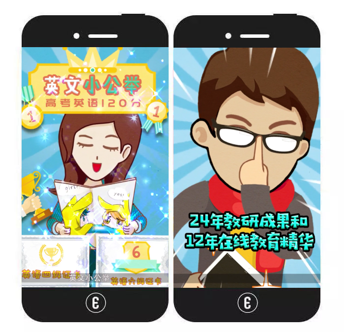 内容特色:用户进入首页后,可通过点击“点我”按钮观看一段动画视频。视频以没过四六级为引线,并通过4段Rap吐槽耳机信号接错、考题难、不努力等导致考试失利的原因,并顺理成章地引出品牌活动。视频结束后,用户还可通过两个提示按钮跳转至新东方在线官网或将作品分享出去。