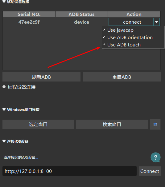 首先连接设备时需要选中三个 , 否则也没办法显示屏幕信息, 会安装几个apk应用, 应该是使用这种方式完成的截屏, 所以之前直接用adb的就失效了
