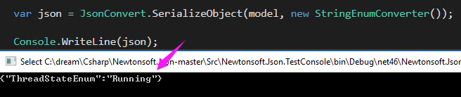这句话是什么意思呢? 默认情况下, SerializeObject 会将 Model 中的 Enum 变成数值型,大家都知道数值型语义性是非常差的,如下代码所示: