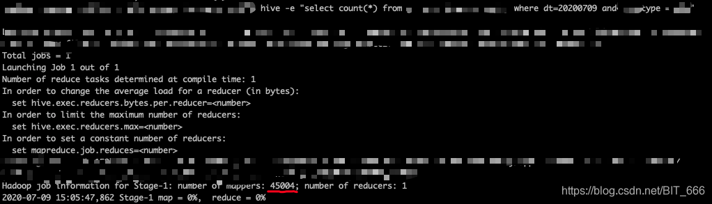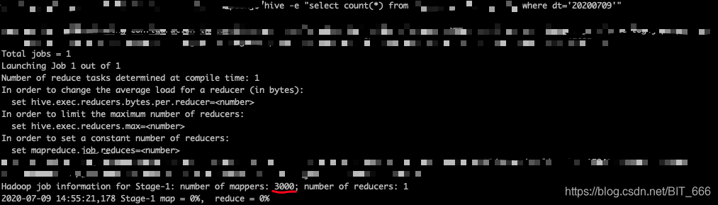 hive -e "select * from table where dt='20200709'"