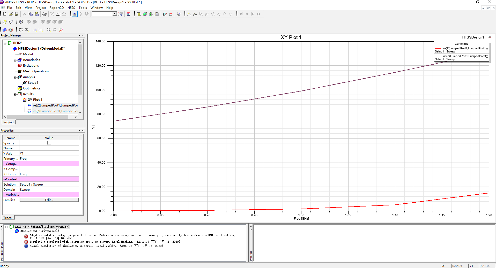 完成之后,点击im和re对应的Calc Range,将其设置为1GHz。
