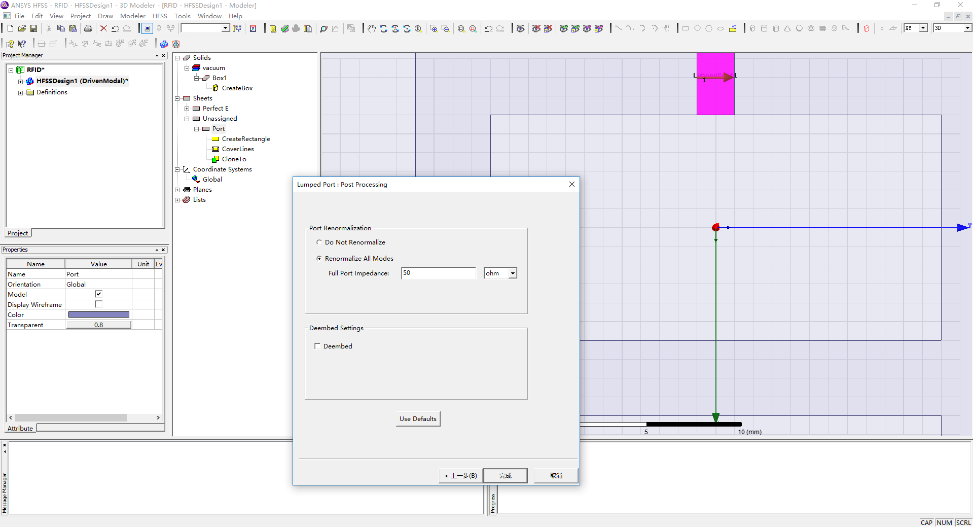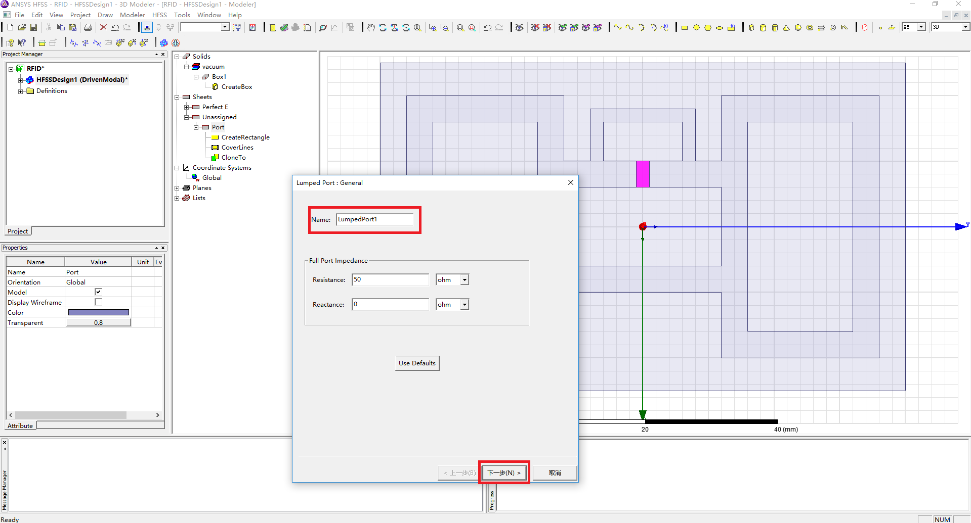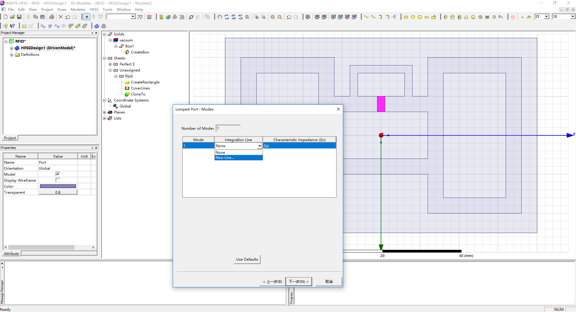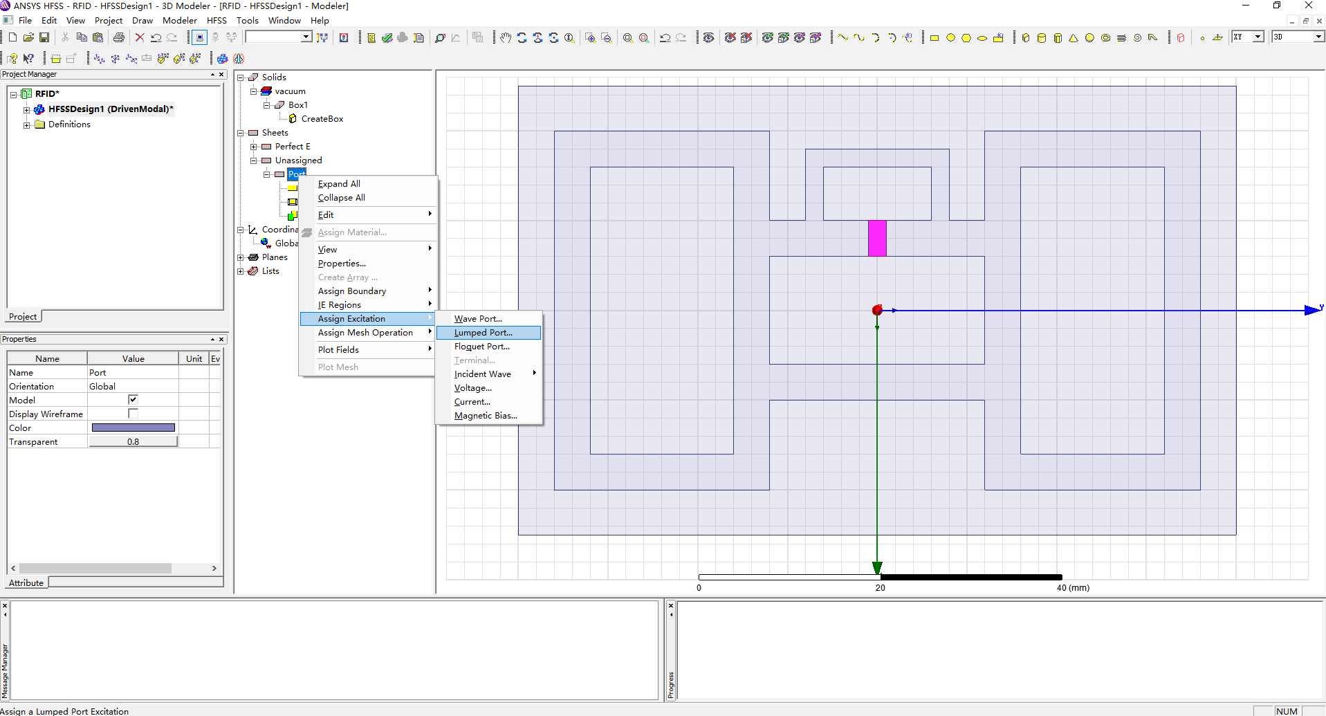 选中Port模型,点击Assign Excitation-Lumped Port,设置为集总端口。