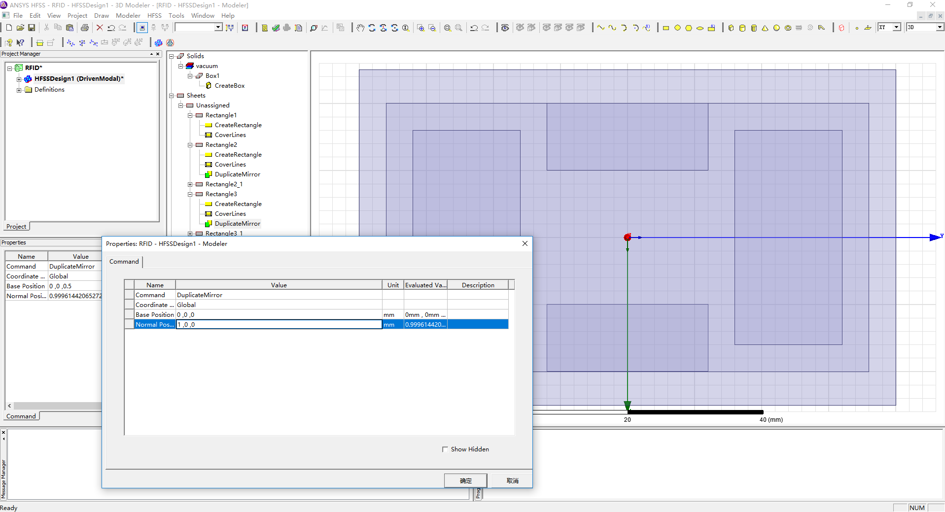 其中Base Position代表对称点,Normal Position代表对称方式,此处为y轴镜像对称。同样操作创建Rectangle3和Rectangle4。