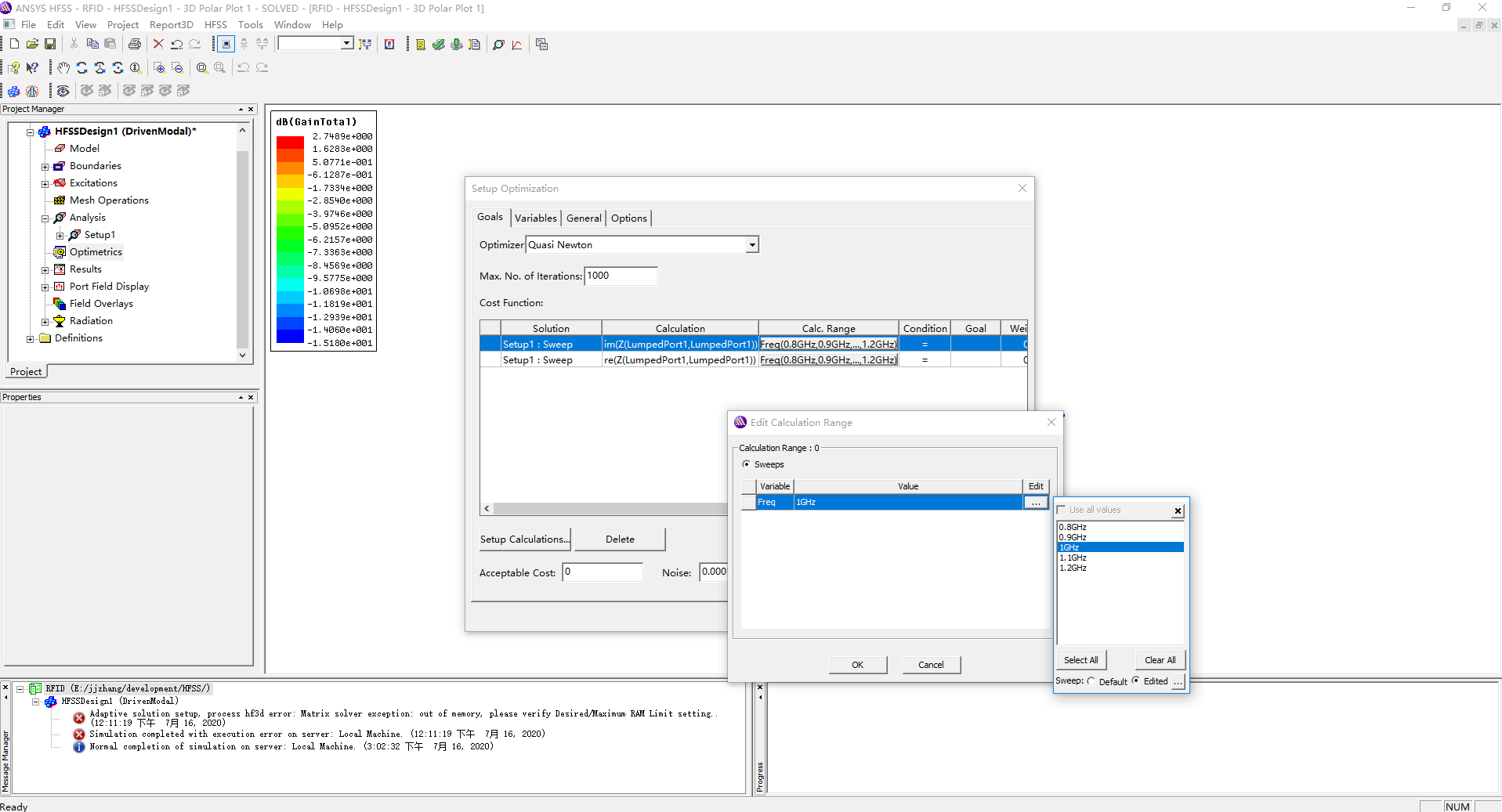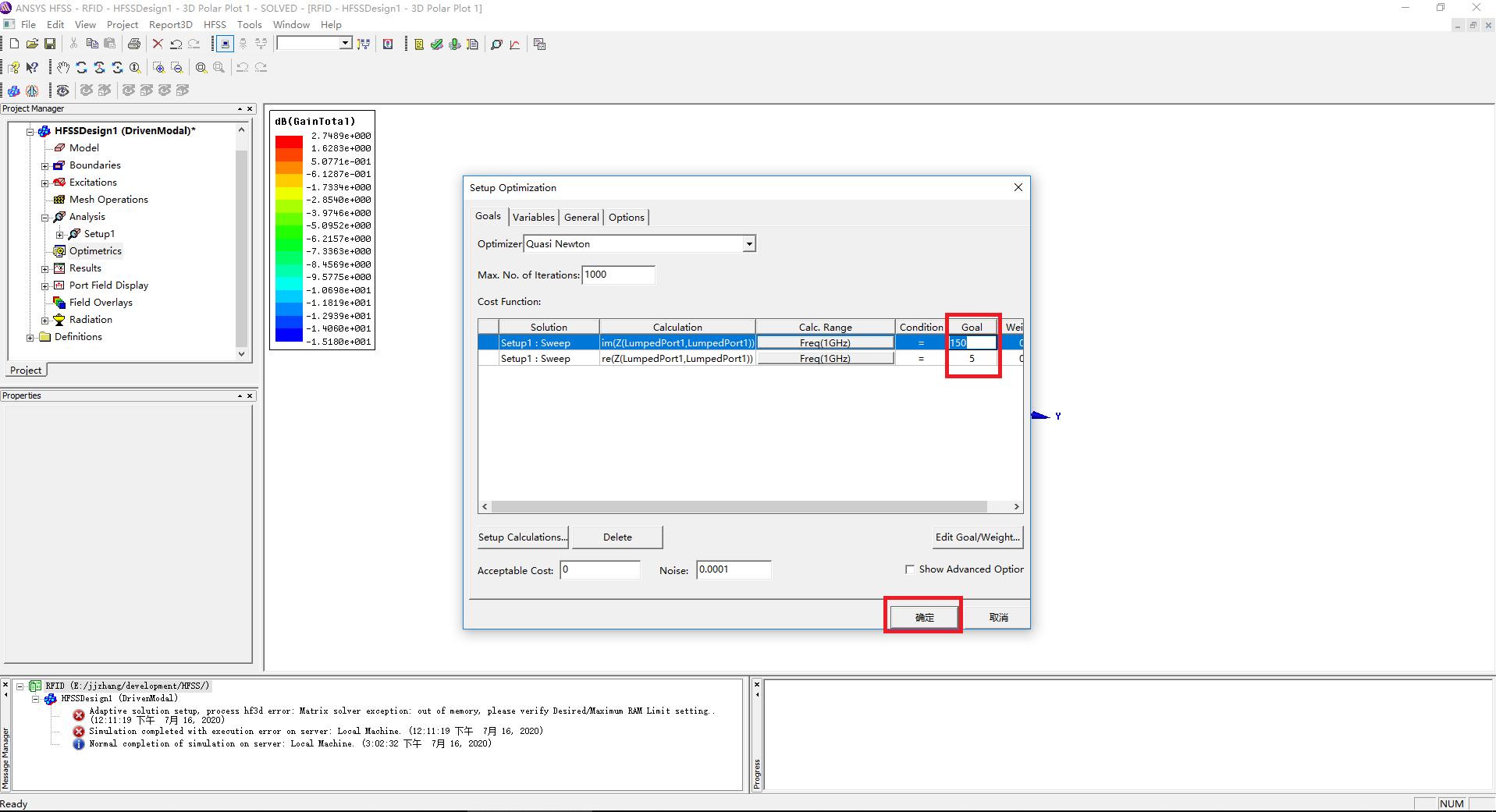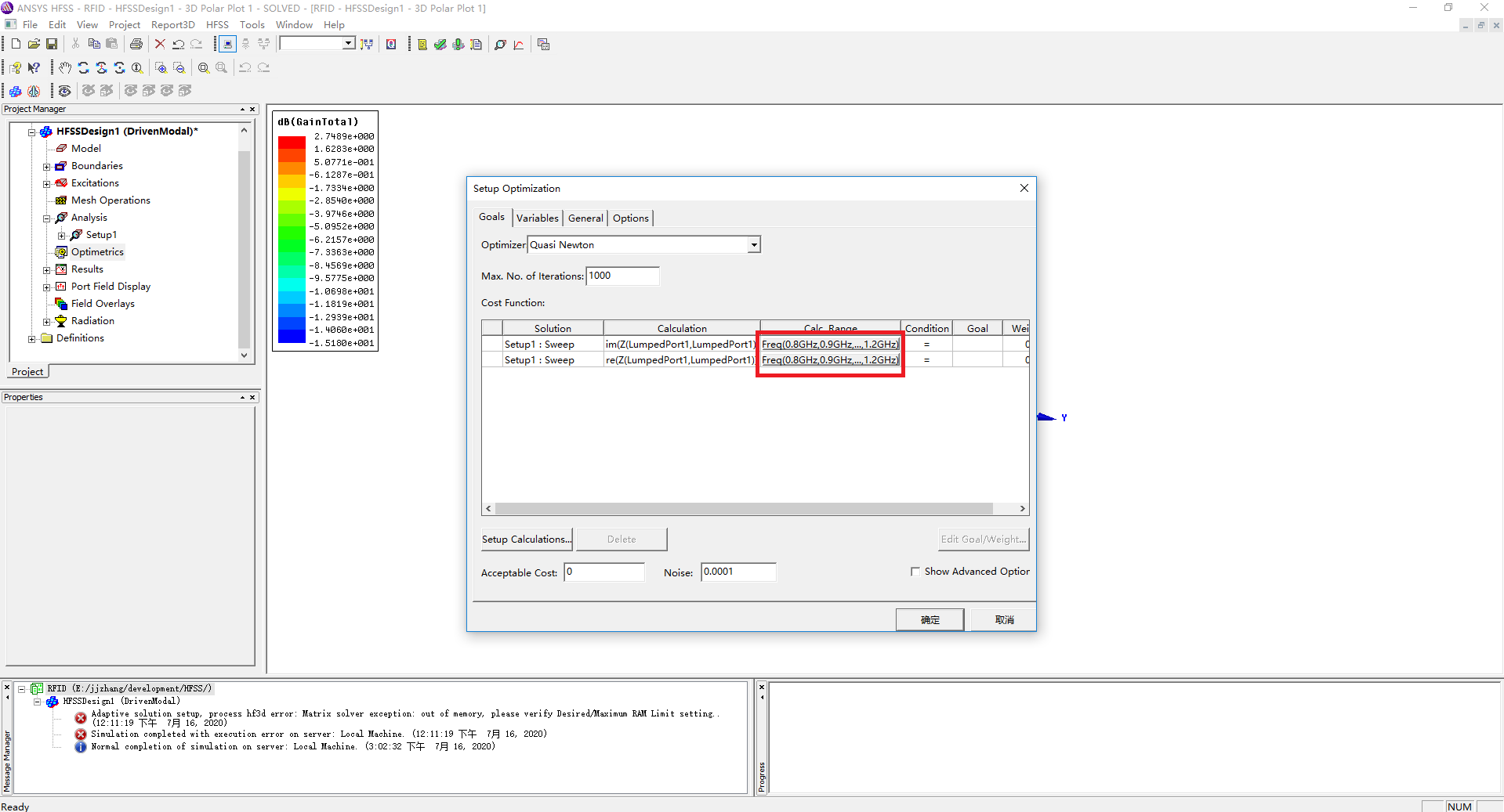 接下来在工程窗口中右键点击OptimizationSetup1-Analyze,开始优化。