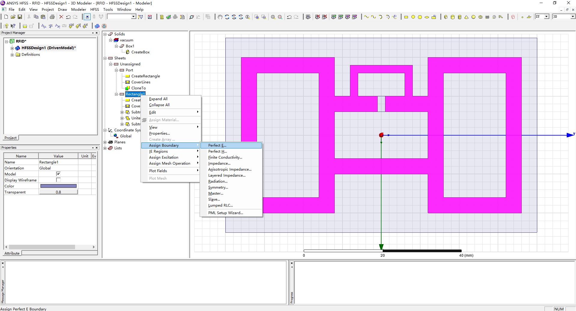 然后选中Rectangle1,右键选择Assign Boundary-Perfect E。